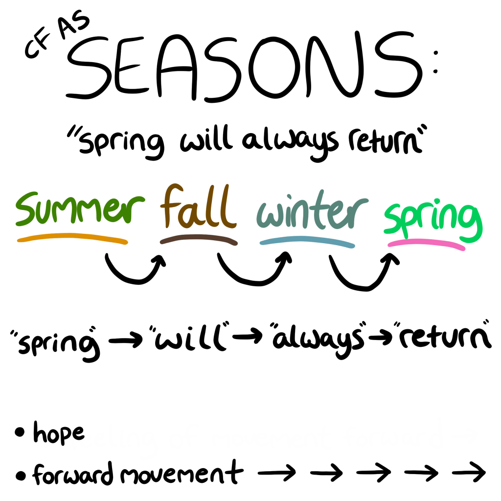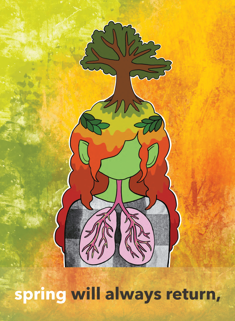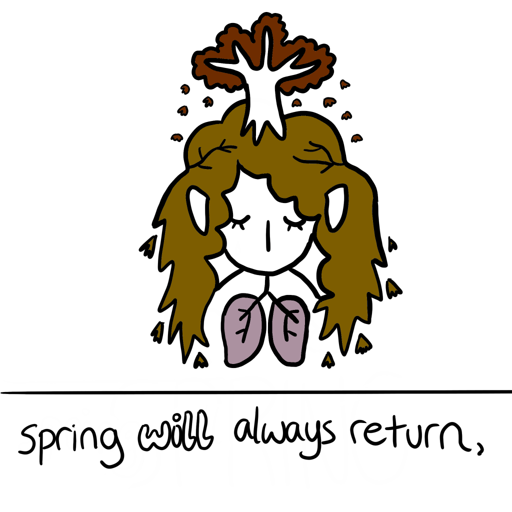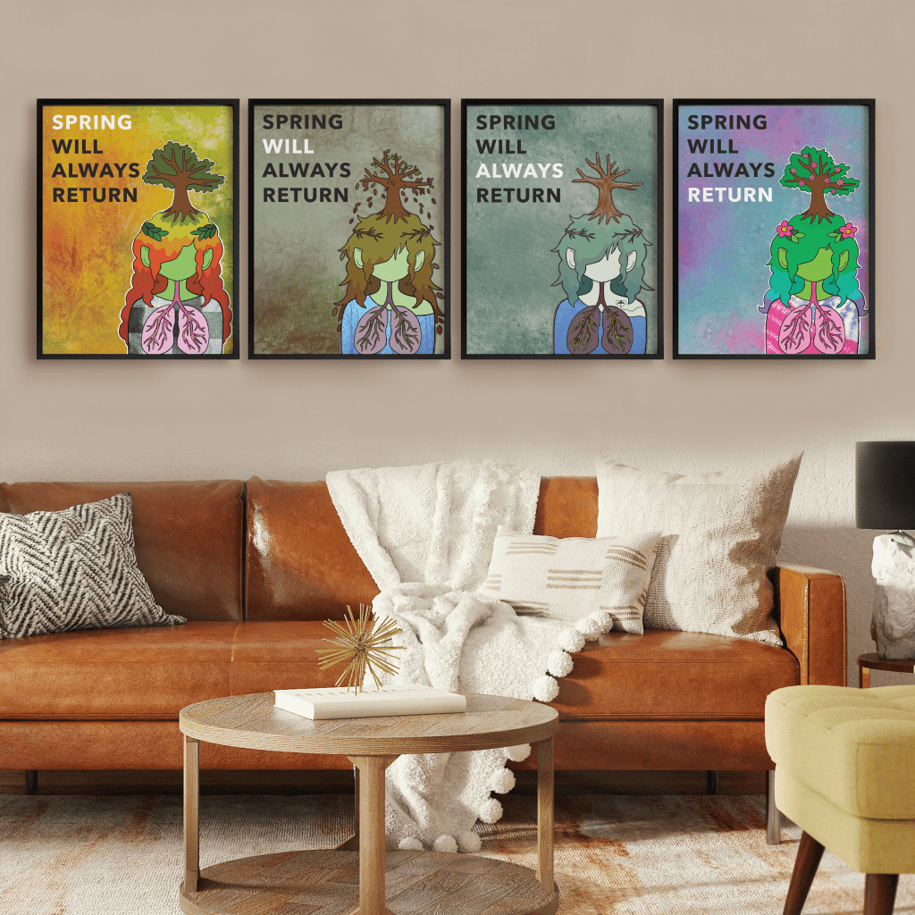 This set depicts Cystic Fibrosis (CF) as the seasons, with the repeating mantra “spring will always return” as a message of holding onto hope even in the darker times with CF.